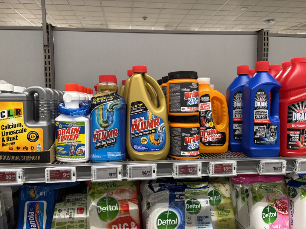 酸性のものと混ざると有毒ガスが発生するので、絶対に混ぜないようにしましょう。